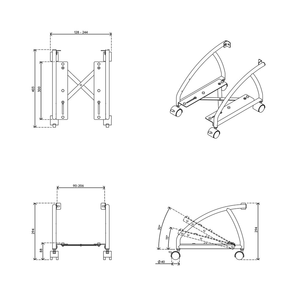 • Verstelbaar in een hoek van 0° naar 0° tot 15° tot 30°