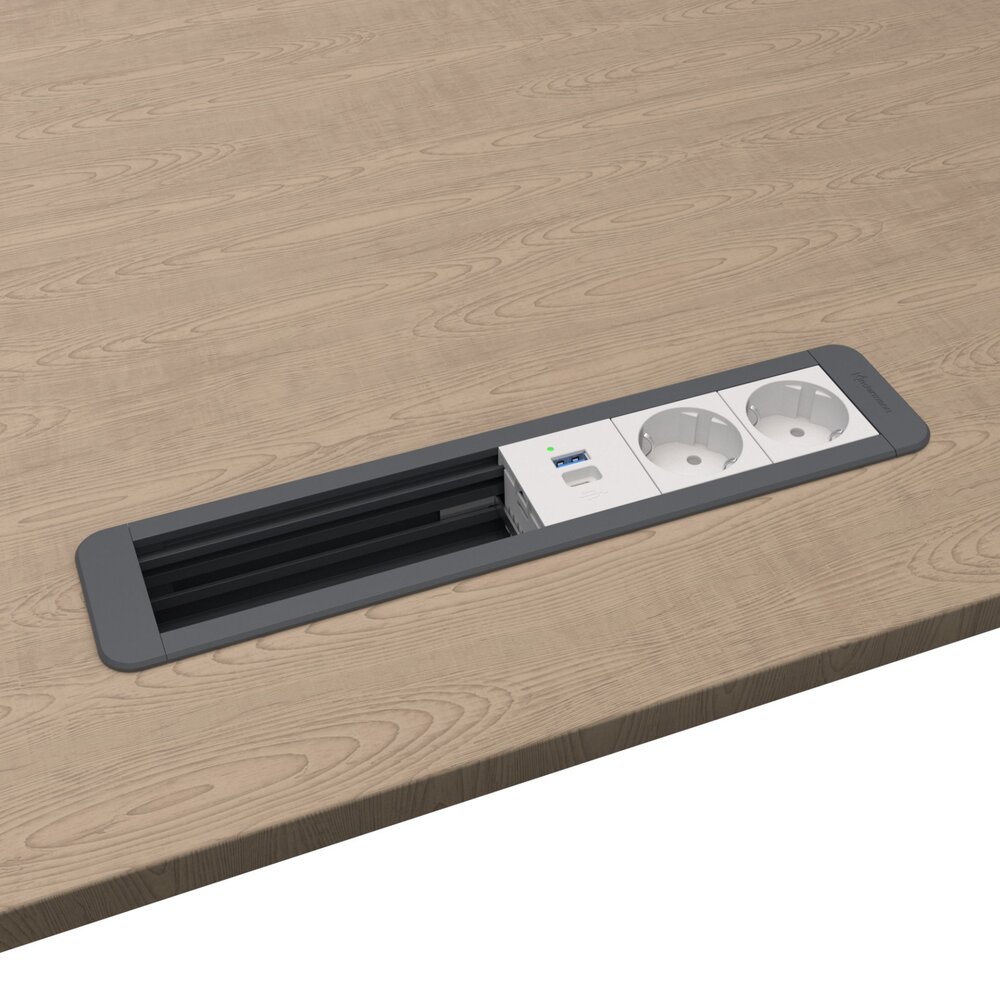 CablePort Office is ontworpen op gemak, een systeem waarbij je kiest voor het aantal stroompunten in combinatie met een USB A en of USB C Oplader (2 ingangen) en de open ruimtes, als deze er nog zijn in kan vullen met de CablePort Konnect Flex Click 45 modules van Kindermann. Dit kan bijvoorbeeld HDMi, Netwerk, USB of zelfs audio zijn. Afhankelijk van wat er gewenst is op de plaats van bestemming.