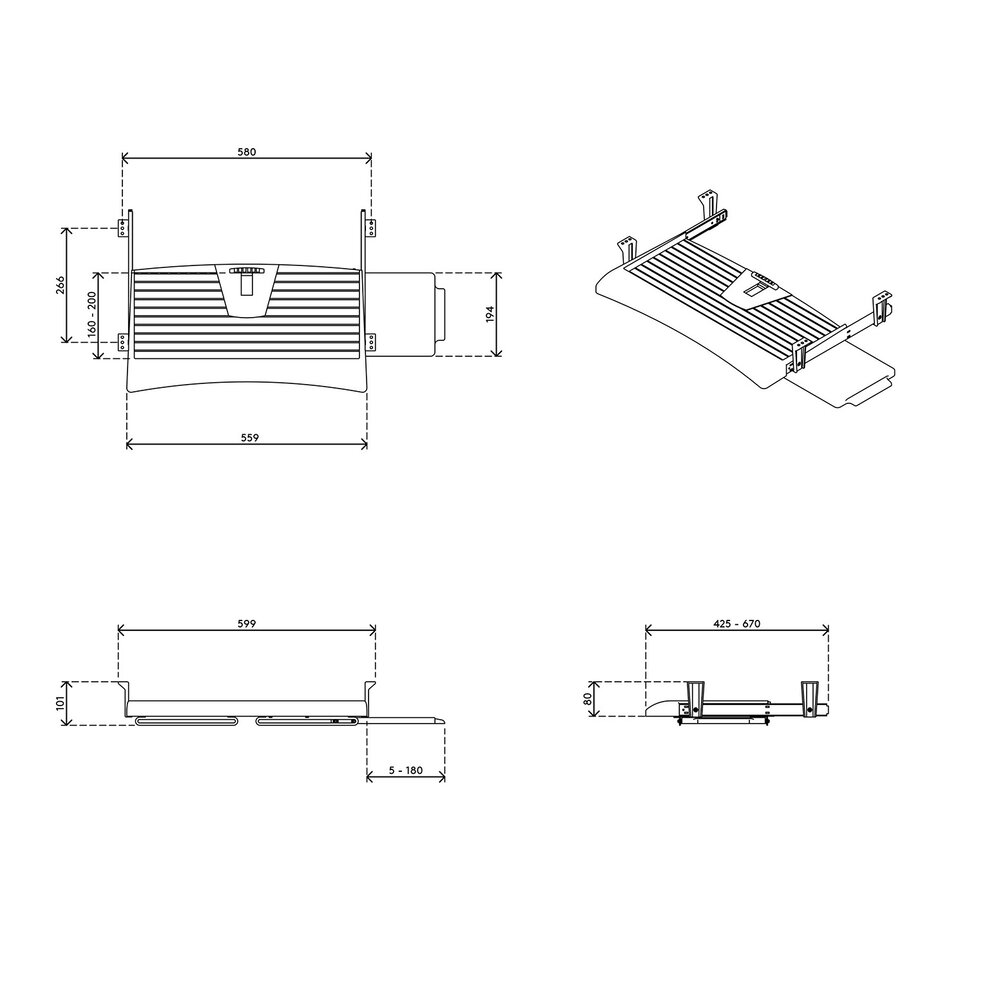 Deze lade schuift uit van onder uw bureaublad en is geweldig voor werkstations die op het bureaublad slechts beperkt ruimte hebben. De lade is gemonteerd op schuifrails voor een soepele werking en biedt plaats aan een toetsenbord en muis.