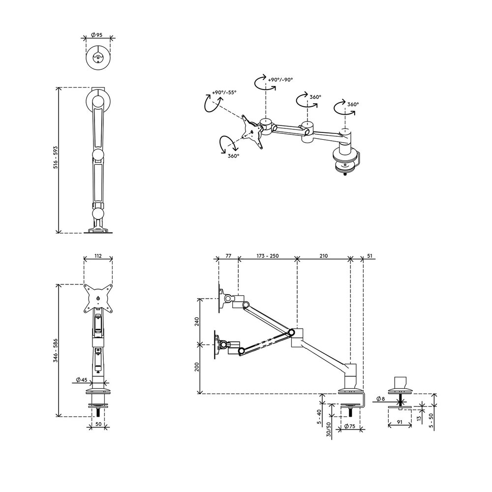Met deze monitor bureausteun weet je 100% zeker dat iedereen de juiste ergonomische houding kan worden aangenomen. De kabels kunnen netjes in de arm worden weggewerkt, waarbij de zilvergrijze metalen arm voorzien van witte hardplastic kappen. Met een gatenpatroon van minimaal 75x75mm en maximaal 100x100mm kan je er eigenlijk blind vanuit gaan dat elke monitor tot 24 inch geschikt is voor deze bureau beugel.