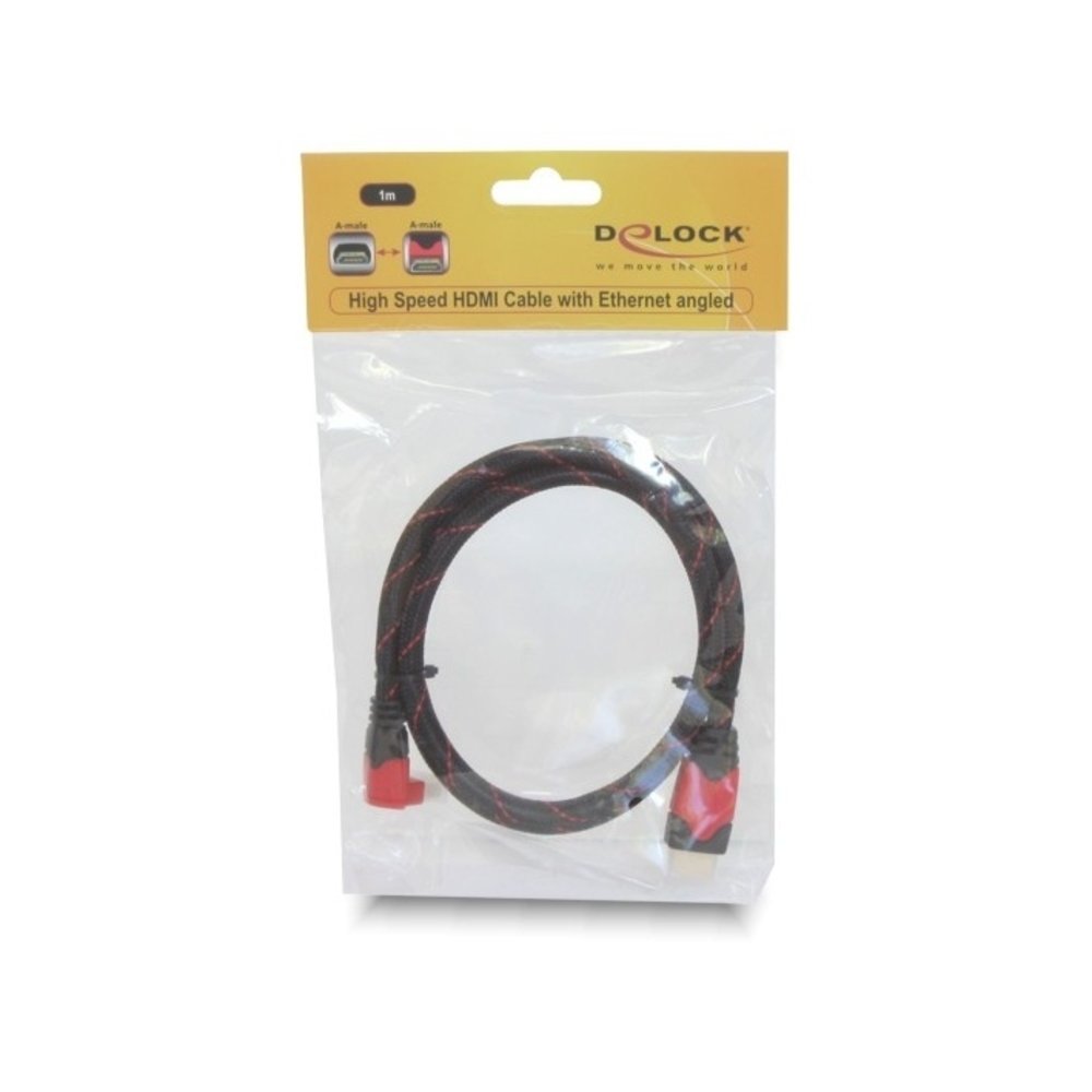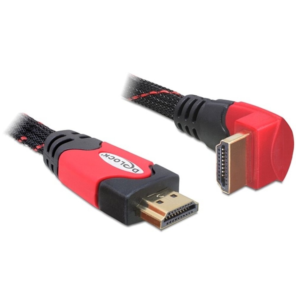 Een HDMI kabel waarbij één zijde van de HDMI kabel een haakse aansluiting heeft. De haakse aansluiting kan helpen bij lastig te bereiken HDMI aansluitingen en het kan ruimte besparend werken. De HDMI kabel loopt zoals ze het noemen direct naar beneden weg vanaf de aansluiting dankzij de positie van de connector. Een kabel die geschikt is voor maximaal 10.2 Gb per seconde 4K resoluties en te gebruiken in combinatie met eerdere versies.