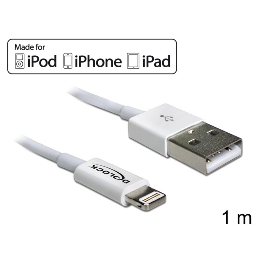 DeLock een specialist in het maken van unieke kabels, zo is het ook gelukt om een kabel te maken die geschikt is voor de data overdracht en het opladen van Apple iPod, iPad en iPhone. De kabel is één meter lang en evenals de originele kabels uitgevoerd in het wit.