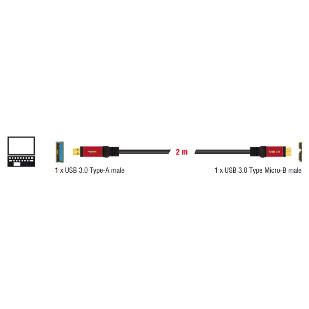 Premium USB A male - USB Micro B male (USB 3.0) - 2.0 meter