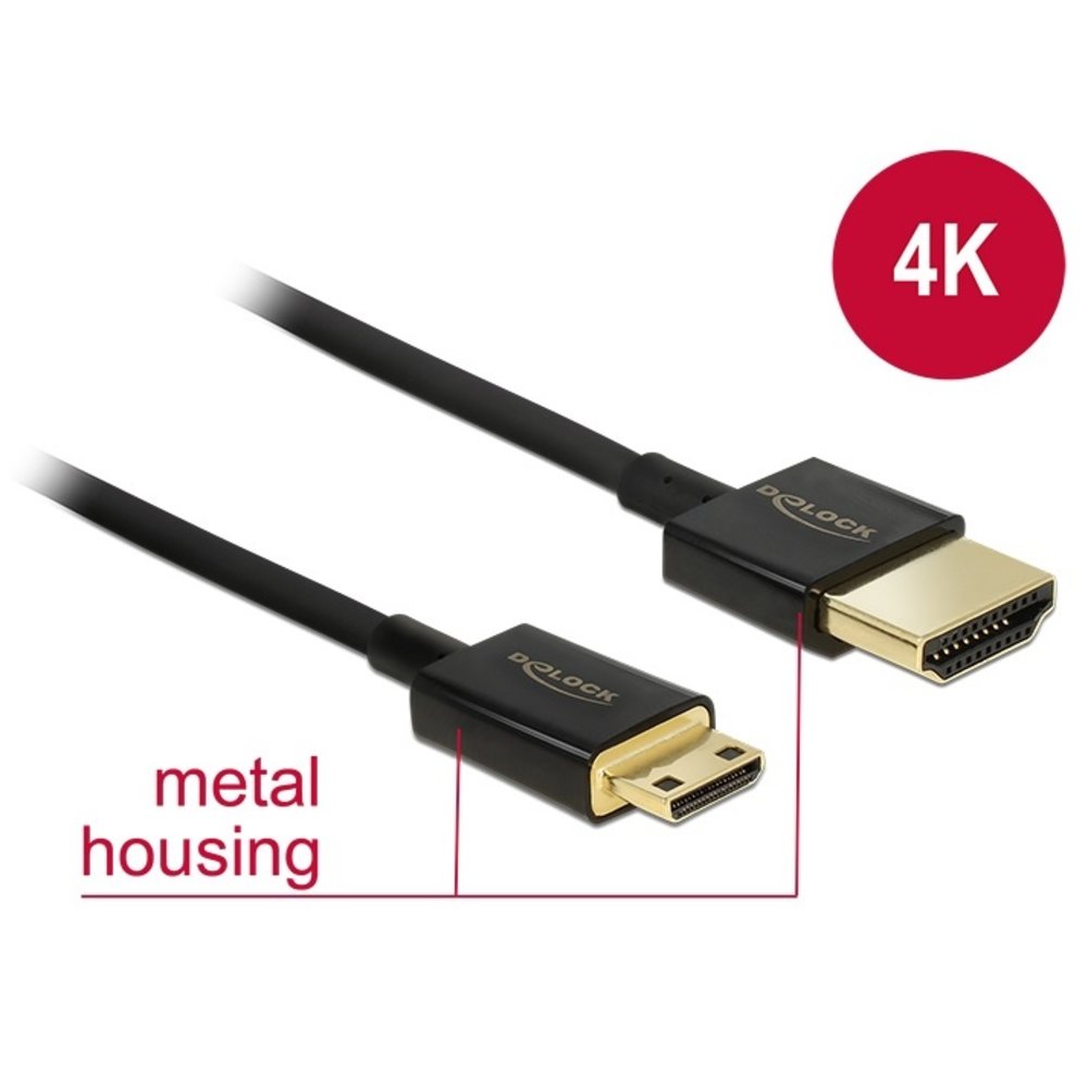 DeLock dunne HDMI A naar HDMI C kabel met zeer korte kappen, geschikt voor de 4K resolutie en HDMI v.2.0