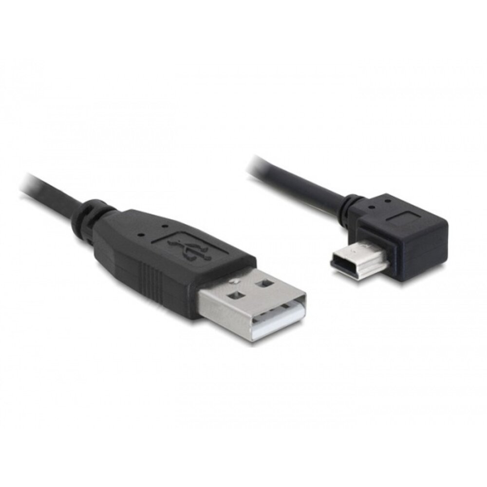 DeLock USB A naar ,mini USB B5 kabel, de mini USB B5 aansluiting is een veel gebruikte aansluiting bij mobiele apparaten als digitale camera's, mobiele telefoons, navigatie systemen, externe harde schijven etc., maar ook bijvoorbeeld de controllers van de PlayStation 3 heeft deze USB aansluiting. Deze kabel heeft aan de mini USB zijde een haakse connector, ideaal voor lastig bereikbare UBS poorten.