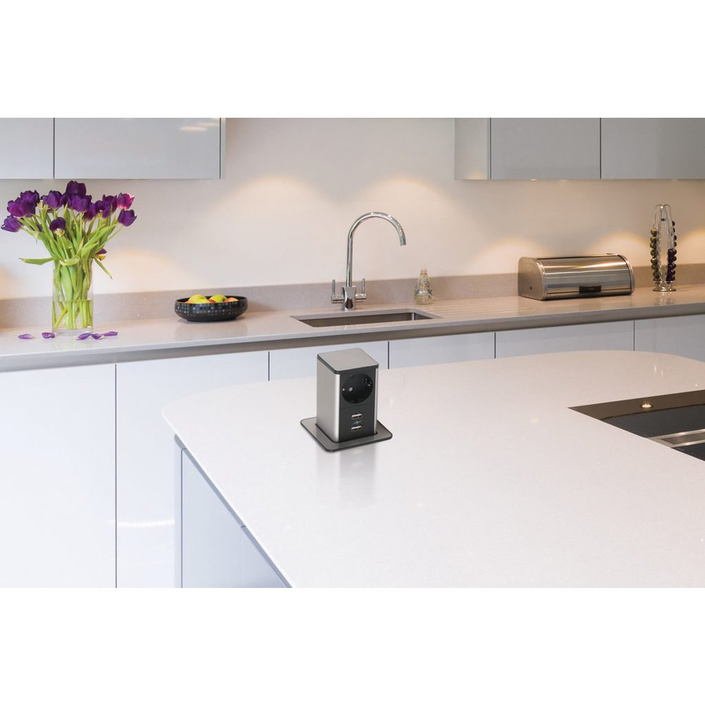 De Pop Up series van Digitel, uitgevoerd met 2 stopcontacten of met een stopcontact + een USB lader met 2 ingangen. Netjes in te bouwen in een keukenbald, tafelblad of het oppervlak van een kast bijvoorbeeld. De Digitel Pop-Up wordt standaard geleverd met een RVS look en is verkrijgbaar met een wit of een zwart binnenwerk.