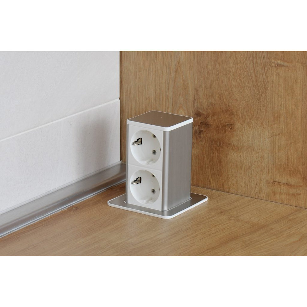 Met een afmeting van van 85 x 85 mm en een "pop up" van 95 mm is het een vrij compacte Pop Up lift. De Pop Up heeft een inbouwmaat van 80 mm en past dus ook zoals eerder gezegd, op de standaard "Grommet" gaten die je in veel bureau's en kantoormubilair kunt vinden. De stopcontacten zijn met elkaar doorgelust en aan de achterzijde voorzien van eeen stroomkabel van 2 meter, welke je dus gewoon direct in het stopcontact kunt steken.