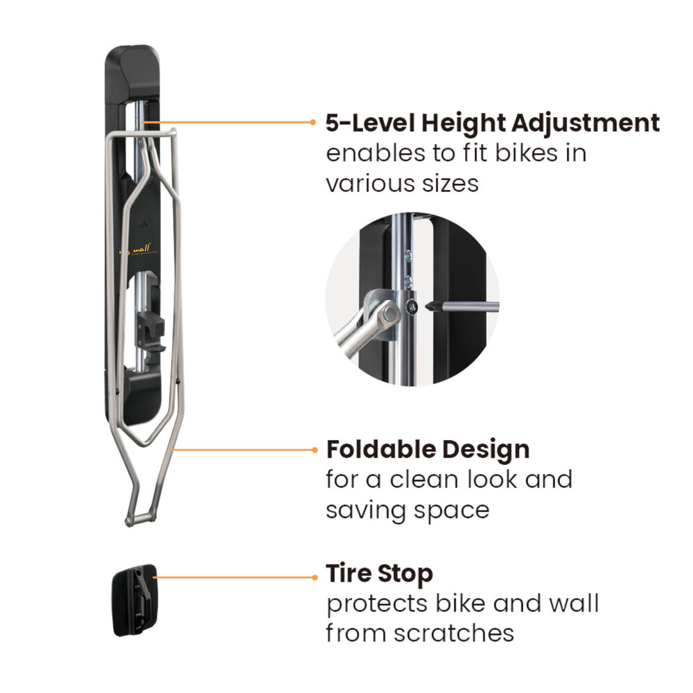 • Optimale ruimte benutting, draai de fiets hangend 60° links -of rechtsom