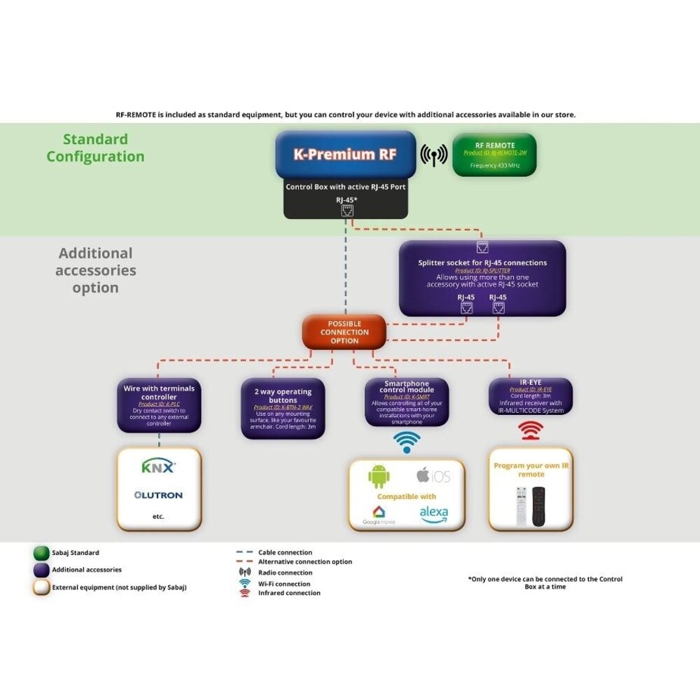 + Geschikt voor alle Sabaj Accessoires (Wifi adapter , PLC controller, IR eye etc.)