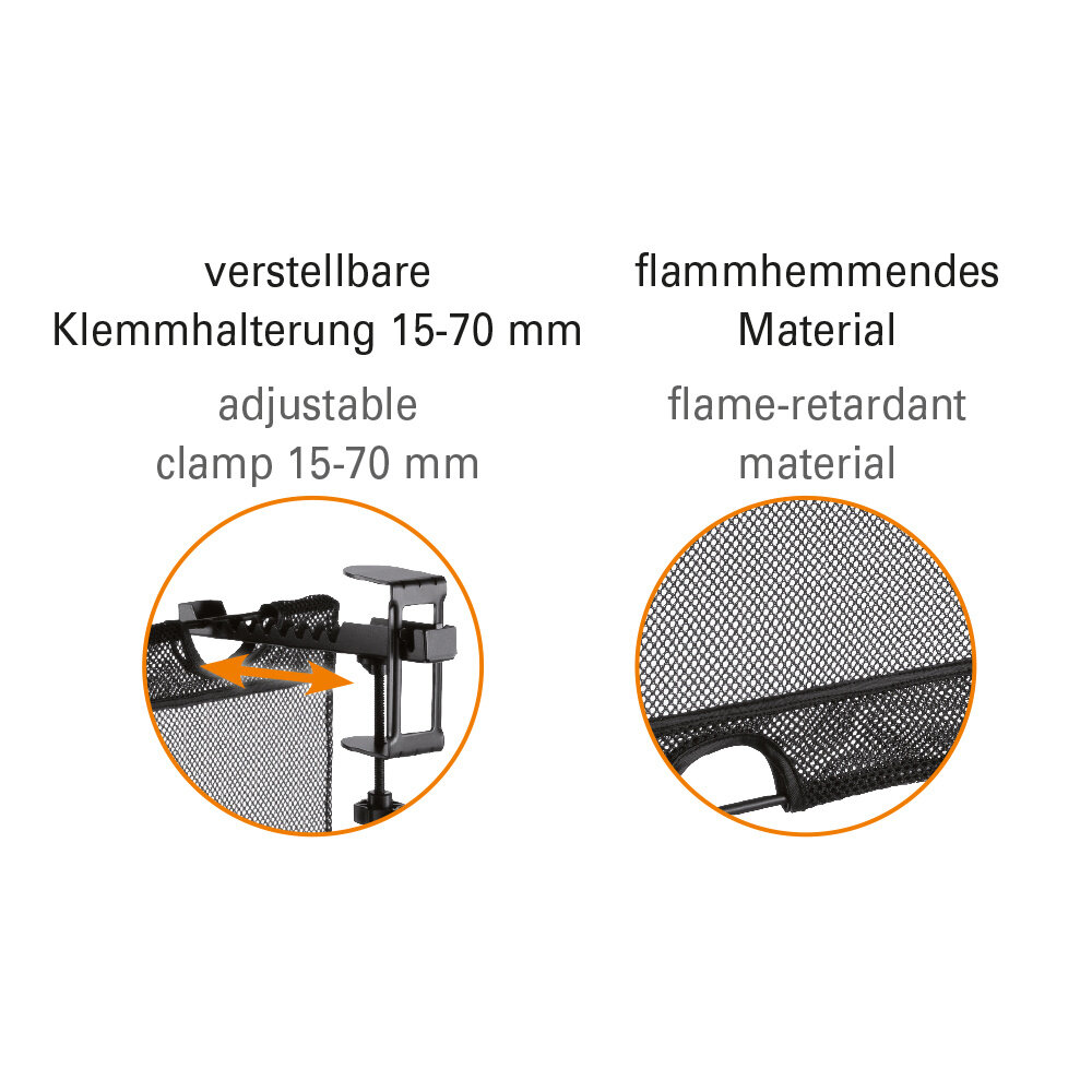 - Bevestigd met 2x een bladklem voor bladen van 15 t/m 70 mm