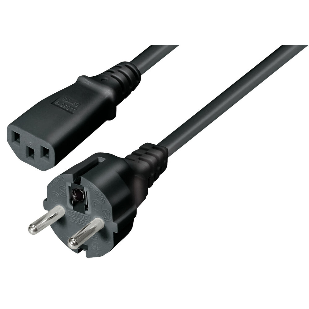 Deze voedingskabel is aan de een kant dus uitgevoerd met een geaarde Europese 220Volt stekker en aan de andere kant een IEC320 C13 stekker, de IEC 320 C13 wordt voornamelijk gebruikt bij Computers, computer monitoren, Plasma schermen etc. maar ook bij heel veel huishoudelijke apparaten. Samen met de welbekende 2 polige 8 vormige voedingskabel zal dit de meest gebruikte voeding aansluiting zijn bij apparaten.