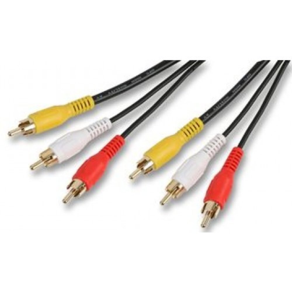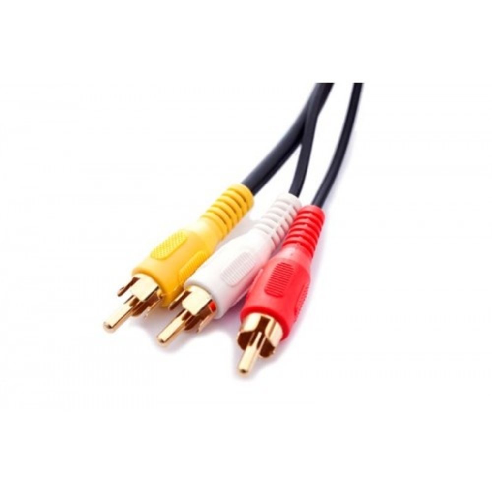 De welbekende 3x tulp kabel met een gele, rode en witte RCA (tulp) aansluiting. Waarbij de gele voor het beeld is en de rode en witte voor het geluid. De gele is in tegenstelling tot bij veel kabels die met de apparatuur wordt meegeleverd iets dikker en een 75 Ohm Coaxiale ader, zodat het beeld met minder verlies wordt overgebracht en u verzekerd bent van een goed plaatje.