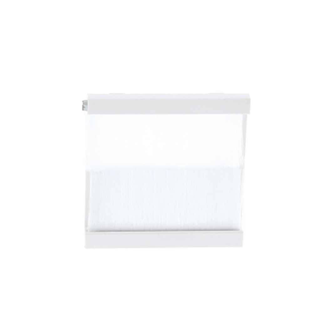 Indien u in de situatie zit dat de kabel wel direct uit de wandgoot of wand wilt laten komen, dan kunt u dit toch netjes afwerken dankzij de borstel modules van KEM Flex. Er zijn hierin 3 uitvoeringen, de halve borstel module. Geschikt voor één halve ruimte in een enkelvoudig frame en een kwart in een dubbelvoudig frame, een volledige borstel module die een volledig enkel frame vult met borstels en een half dubbelvoudig frame en een dubbelvoudige borstel module, welke een volledig dubbelvoudig frame voorziet van borstels. Zo kunt u dus ook wanneer u met meer dan 4 kabels te maken heeft, toch alles aansluiten en afwerken.