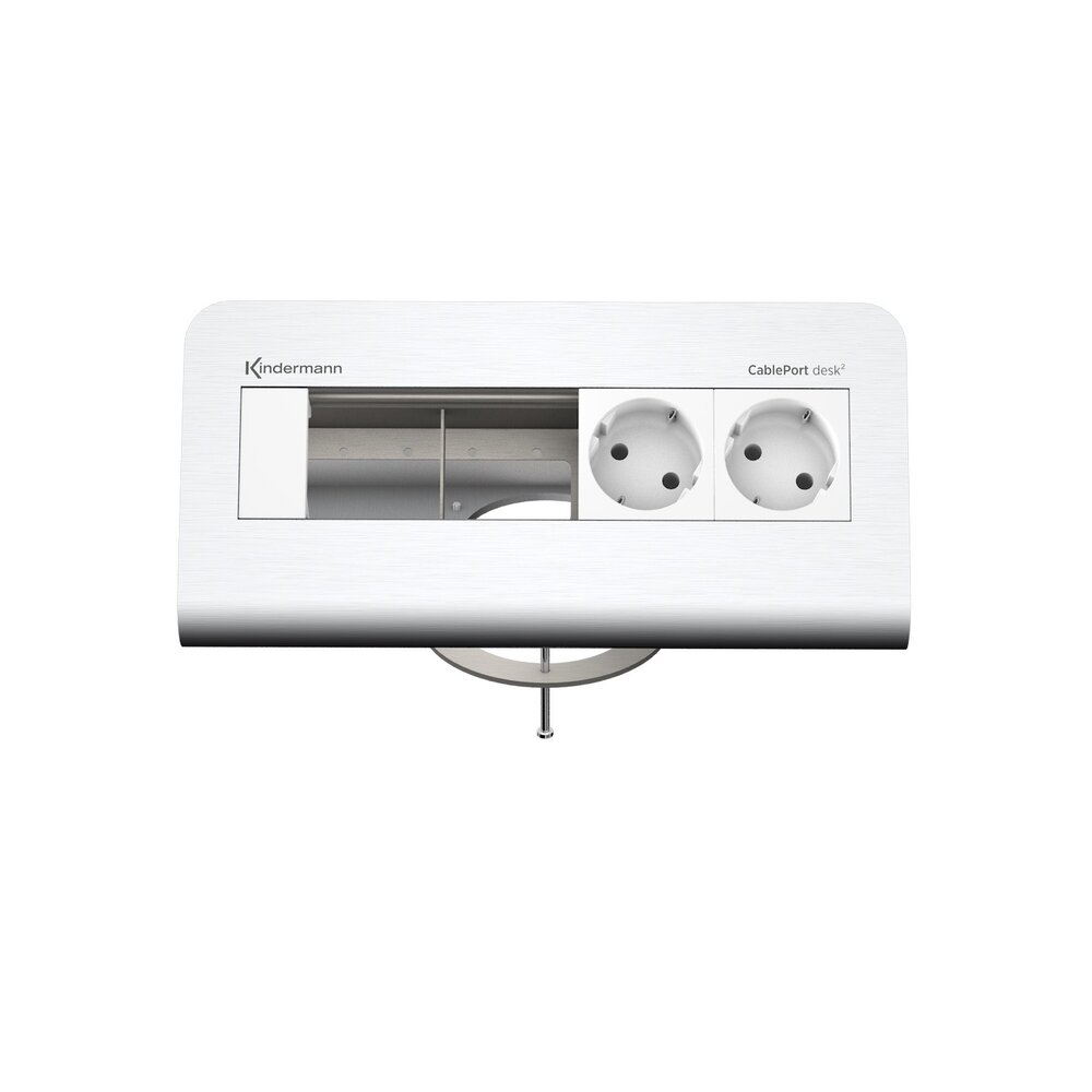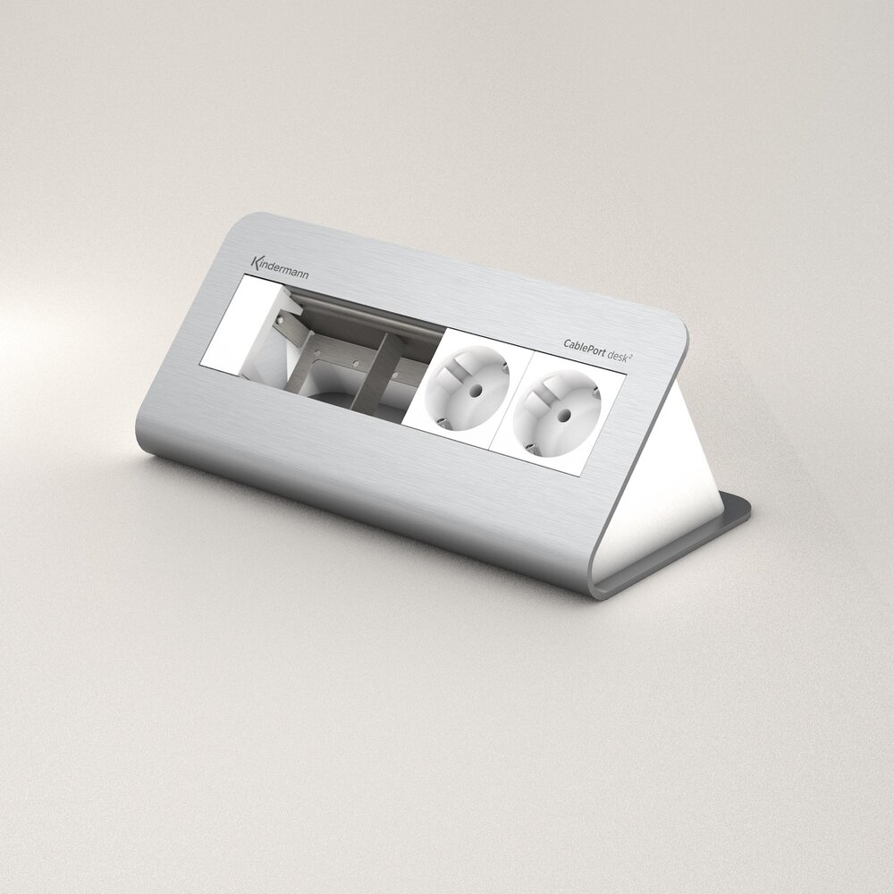 De CablePort desk² 80 is onderdeel van de reddot design award winnende lijn van Kindermann. Ongetwijfeld het fraaiste opbouwsysteem in de markt met grote flexibiliteit. Het is volledig zelf samen te stellen. Je kiest het aantal stopcontacten, vervolgens welke aansluitingen je wilt hebben. Uiteraard dien je wel rekening te houden met de ruimte.