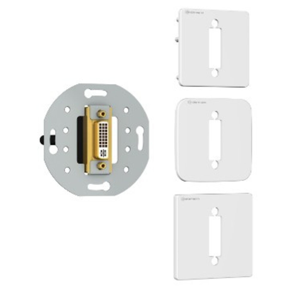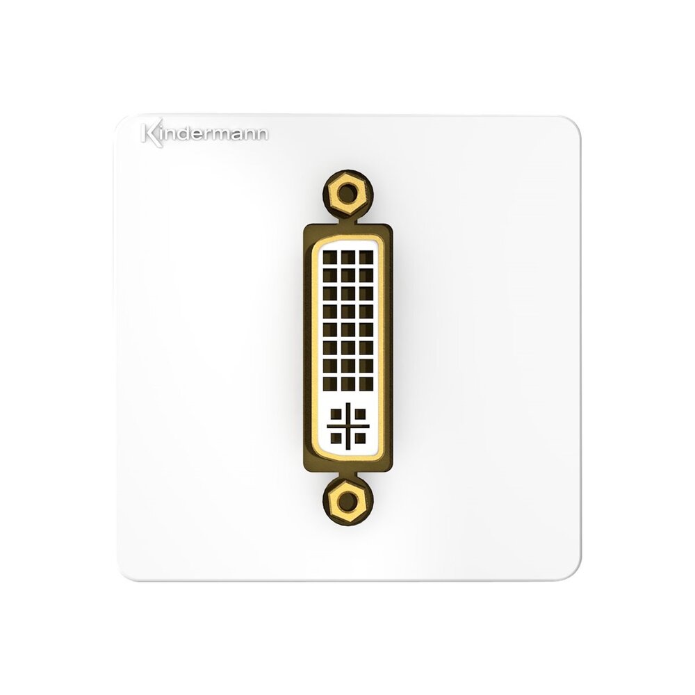 De DVI (24+5) module is een volledig inbouwraam groot, hetgeen inhoud dat er slechts één montageraam kunnen worden gemonteerd. Je kunt in dit geval dus maar één aansluiting in een wandcontactdoos bouwen, of dit nou in de wand, op de wand of in een wandgoot is, met het Konnect Design Click systeem van Kindermann is het allemaal mogelijk.