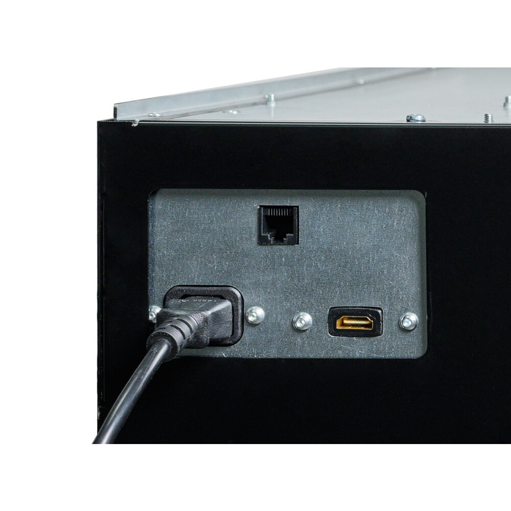 De bediening gebeurd via de knoppen aan de bovenzijde, één knop voor naar boven en één knop naar beneden. Daarnaast is zijn de M-Eco Monitorliften voorzien van een actieve RJ-45 poort, waardoor je er een K-PLC controler op kunt aansluiten voor een bediening met een externe schakelaar of de K-SMRT van Sabaj waarmee je de Monitorlift via een app op de telefoon of tablet kunt bedienen, maar ook met Google Home en Amazon Alexa.
