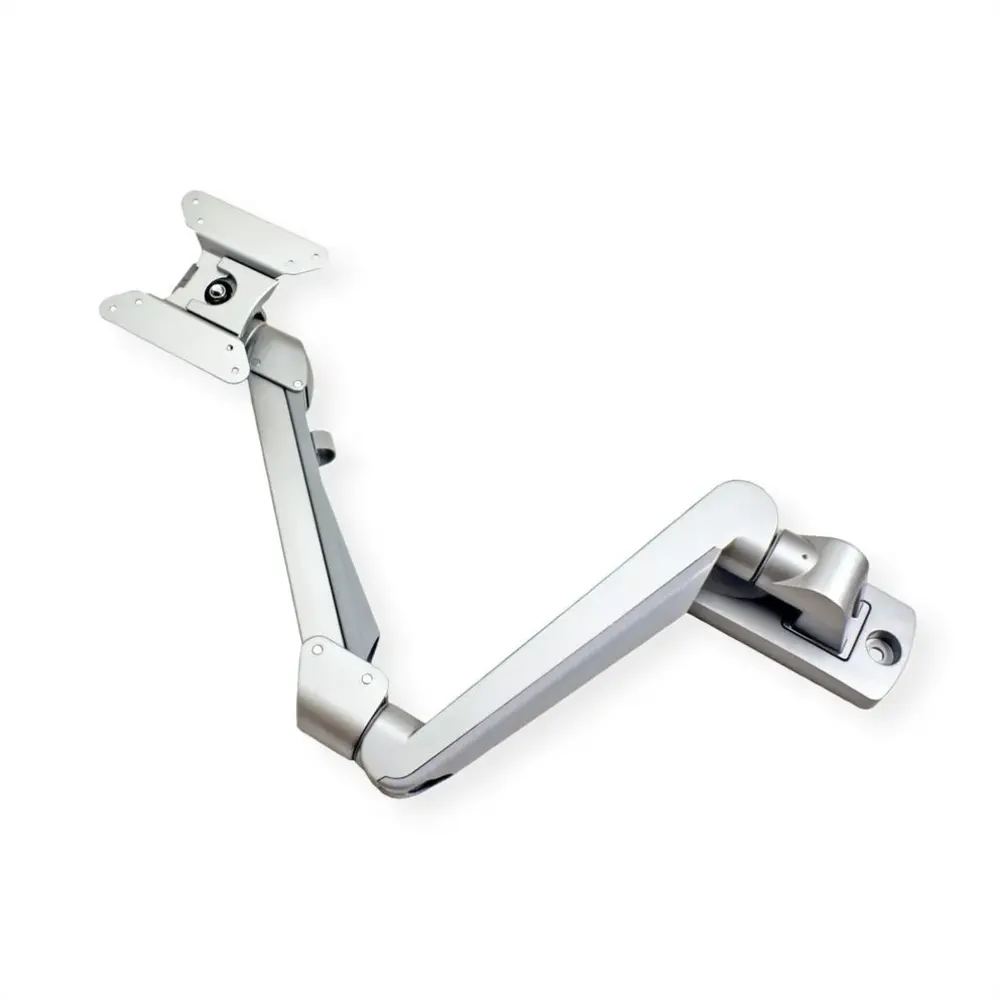 De arm is voorzien van meerdere draaipunten, aan de wandzijde, in het midden en achter het scherm. Uiteraard kun je het scherm ook roteren en kantelen. Kortom, je kunt met je monitor werkelijk alle kanten op. De gasveer is geschikt voor monitoren van minimaal 2, tot maximaal 8 kg. De gasveer stel je eenvoudig met behulp van een stelschroef op het juiste gewicht. Heb je hem juist afgesteld, dan blijft de monitor op elke gewenste hoogte hangen. De hoogte verstelling is over +/- 32 cm, houd er rekening mee dat de maximale afstand tot de wand vanzelfsprekend wel iets veranderd, wanneer je het scherm omhoog of omlaag brengt.