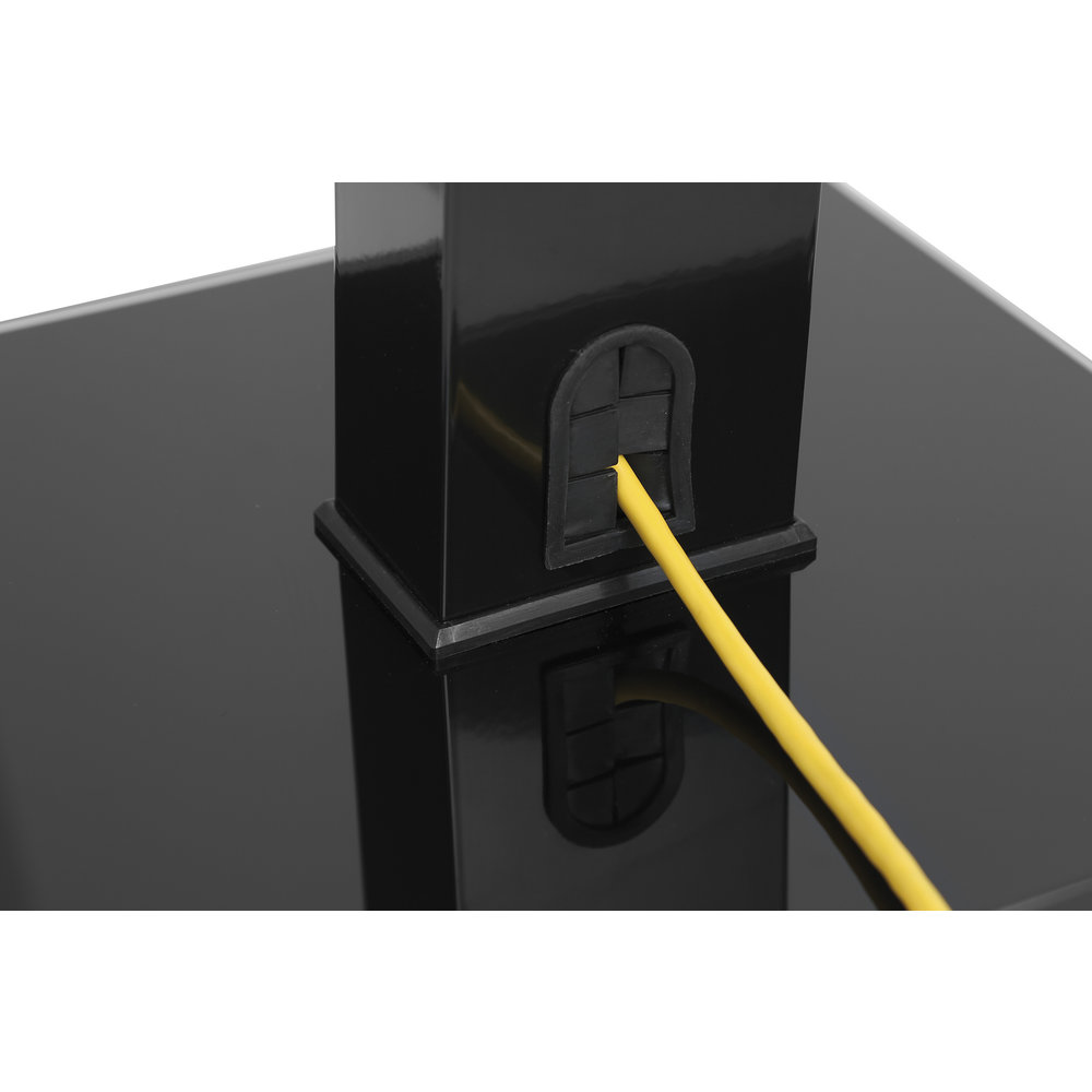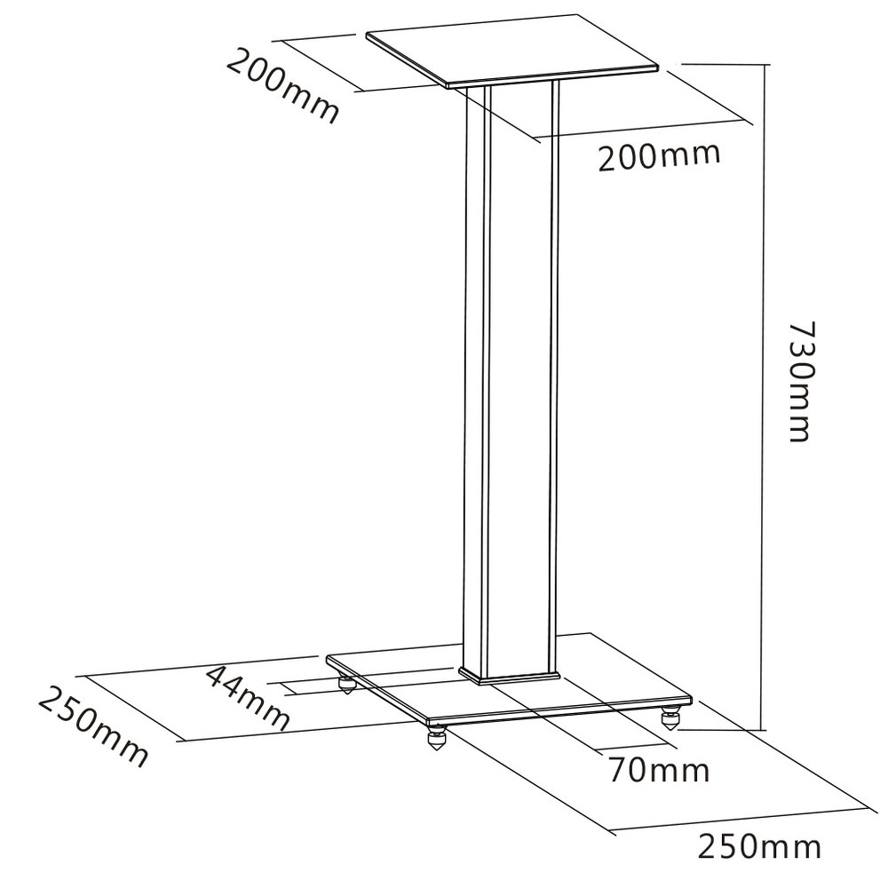 Een solide, sterke en fraaie aluminium met een chique walnoot kleurige pilaar, afgewerkt met elegante zwart glazen segmenten. Zowel de voet, welke geleverd wordt met "Spikes" voor een optimaal behoud van de geluidsbeleving als het speakerplateau is van (veiligheid) glas. De afmeting van de speakerplaat is 200 x 200 mm en voorzien van anti slip rubbers, voor zowel het geluid als de veiligheid van de speakers. De voetplaat is iets groter, deze is 250 x 250 mm. Al het glas is uiteraard veiligheidsglas.