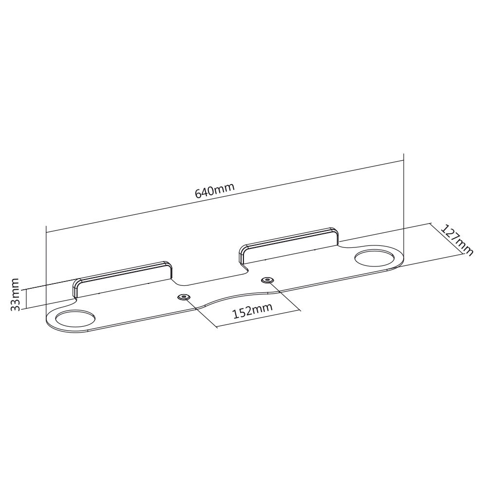 De bekabeling kan zoals gezegd netjes uit het zicht worden weggewerkt, zeker wanneer je de beugel direct onder de TV hanget. Een sterke stalen ABS constructie met een zwarte laag poedercoating voor de afwerking. De afmetingen van deze soundbar wandbeugel zijn 127 x 640 x 33 mm.