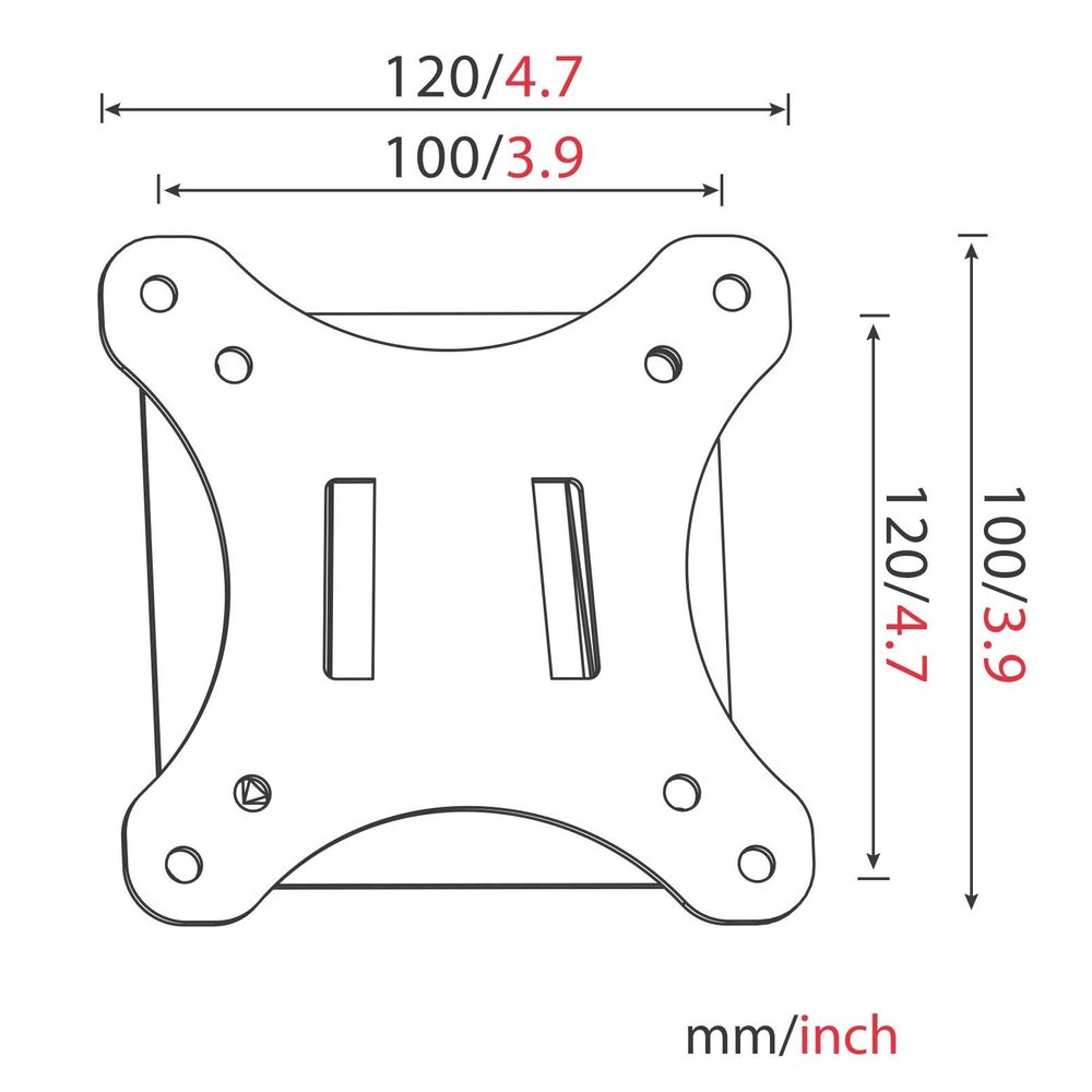 Een TV beugel voor de kleinere Tv's of computer monitoren. Voorzien van een VESA gaten patroon van minimaal 75 x 75mm en maximaal 100 x 100mm, zeer eenvoudig te monitoren en strak tegen de wand. Je bevestigd de muurplaat, vervolgens schroef je de monitorplaat op de TV of monitor op de daarvoor bestemde gaten en schuif je deze op elkaar. De afstand van de wand tot de monitor is 18mm.