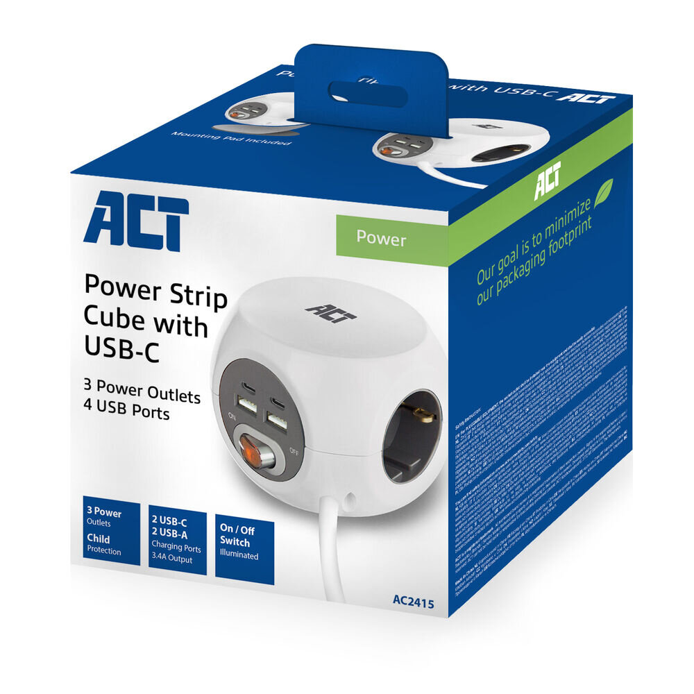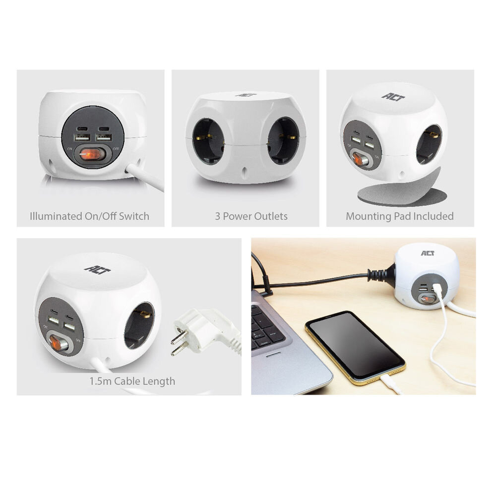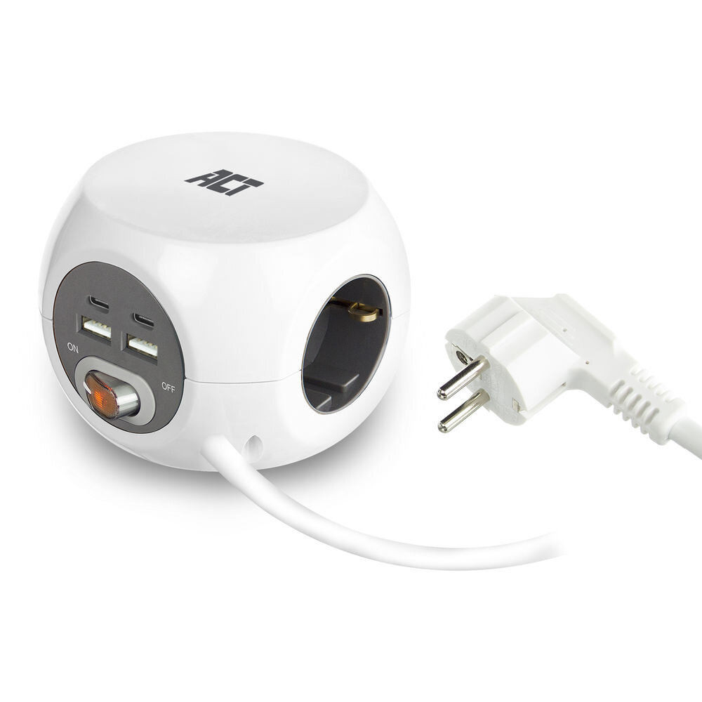 Vaak hebben appartementen toch weinig stopcontacten en heb je meerdere USB apparaten bij je die opgeladen dienen te worden. Deze PowerCube heeft 3 stroom ingangen en 2 USB A female + 2 USB C female aansluitingen voor het opladen van apparaten (3.4 A). Hij is voorzien van een verlichte schakelaar waarmee je de poorten kunt in -en uitschakelen daarnaast zijn de USB-poorten zijn beveiligd tegen te hoge stroom en kortsluiting. De stopcontacten zijn allemaal voorzien van kinderbeveiliging.
