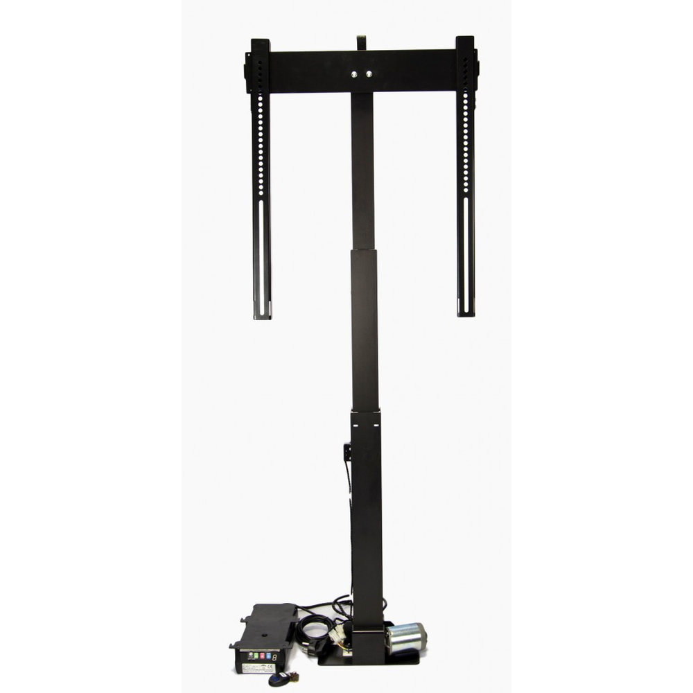De Sabaj Eco Serie is een TV lift met vele voordelen en grote gemakken. Anders dan de meeste TV liften is deze lift uitgevoerd met een motor die een metalen spindel (schroefdraad) aanstuurt, waar andere TV liften aangestuurd worden met behulp van een riem systeem. Je kunt je voorstellen, dat een spindel een veel langere levensduur heeft. Daarnaast hebben de Sabaj TV liften vrijwel alle elektronica in een externe controle box buiten de lift, waar je overigens de lift ook mee zou kunnen bedienen. Ook een externe controlbox brengt zo zijn voordelen mee. Hier komen we later nog even op terug.