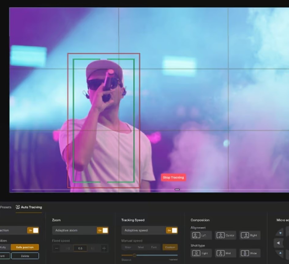 De geavanceerde detectietechnologie zorgt ervoor dat personen die opnieuw in beeld komen, automatisch worden herkend en gevolgd. Wat resulteert in vloeiende, filmische camera bewegingen.