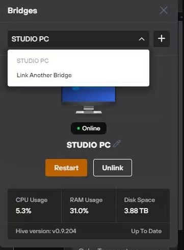 De Multi-Bridge functionaliteit is beschikbaar bij alle Hive-abbonementen. Met Multibridge kunnen gebruikers meerdere computers waarop Hive draait samenbrengen in één centrale productie interface.