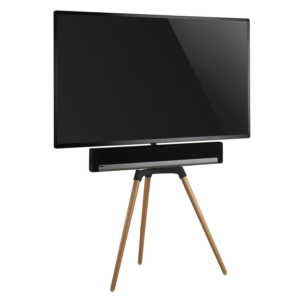 Een accessoires voor de driepoot TV Standaarden HT20 en HT21. Wil je nou je scherm en een soundbar op één 3 poot bevestigen dan kan dat met deze soundbar beugel. De soundbarbeugel is redelijk universeel, maar het is wel even opletten dat de ophanggaten aan de achterzijde zitten en je aansluitingen wel ook bereikbaar blijven. Kortom, hij is helaas niet voor elke soundbar geschikt, maar zeker een heleboel. Het fraaie is, dat je hem ook mee kunt draaien met de "Easel" Studio TV standaard.