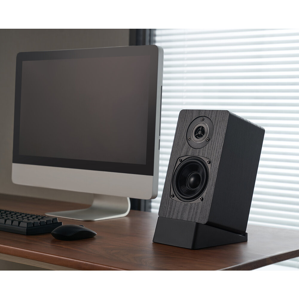 Dankzij de compactheid zal de speaker zeer stevig op de standaard komen te staan, zo kun je het maximale uit je speaker halen. Wanneer je de speaker zonder een standaard op je bureaublad, ladekast of dressoir zet dan heb je meer kans op trillingen en resonantie en haal je dus niet het optimale geluid uit de speaker.