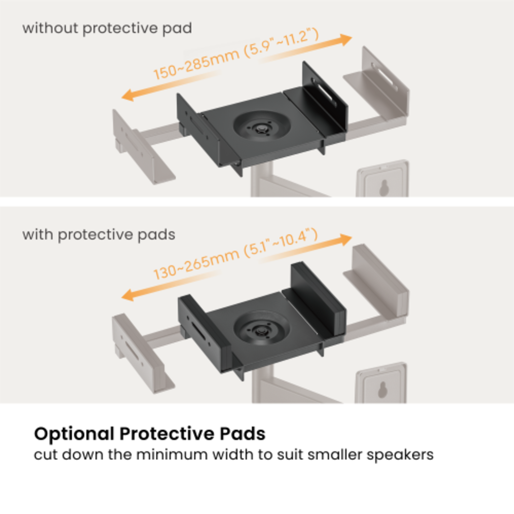 • Speaker diepte max. +/- 220 mm, gewicht max. 25 kg