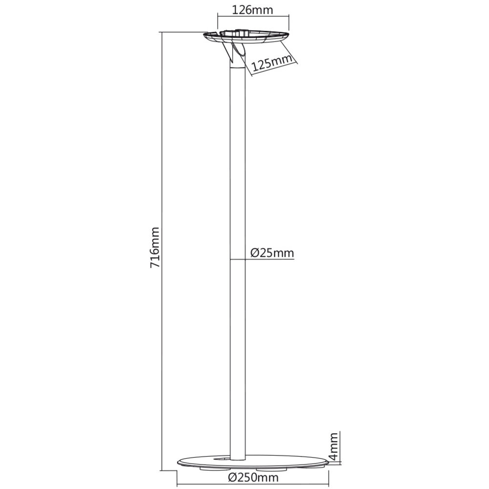 Eenvoud siert de standaard, een fraaie speakerstandaard voorzien van kabelmanagement (kabel kan door de speakerstandaard naar de vloer worden gebracht) en een snele en eenvoudige installatie. Een fraaie afwerking in het zwart of het wit en een hoogte van 716 mm staat de speaker op nagenoeg de meest ideale hoogte, wanneer je op de bank zit.