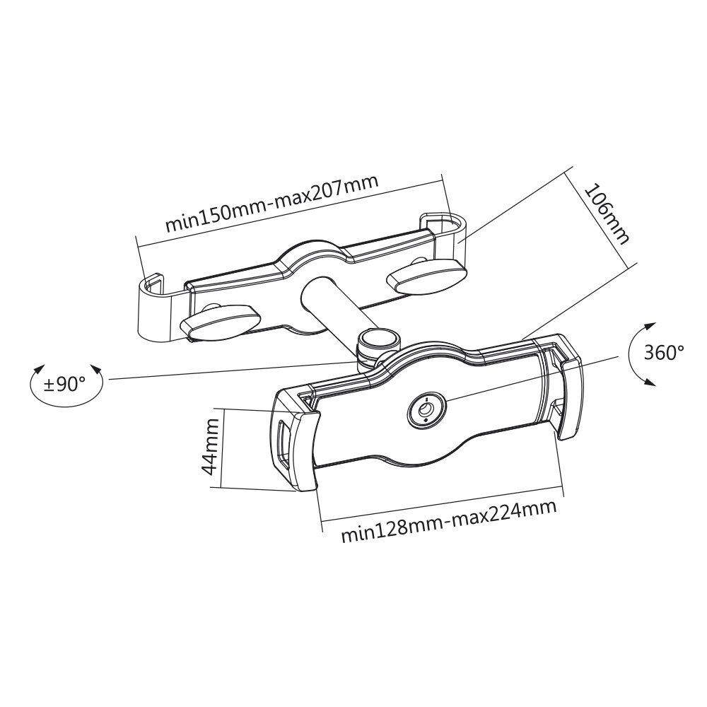 Met deze hoofdsteunhouder kun je tablets tot maar liefst 12.9 inch bevestigen aan de hoofdsteun, je hoeft niet te schroeven of lijmen, maar kunt hem zo zonder gereedschap klemmen aan de hoofdsteun van de stoel voor je. De tablet erin klemmen en je kunt gaan. De tablet kan nog 175° kantelen en 360° draaien/roteren zodat je hem in de lengte en de breedte kunt gebruiken, maar ook de meest ideale kijkhoek bepalen. Dankzij het kogelgewricht is hij eenvoudig snel in te stellen. Daarnaast is hij voorzien van uitschuifbare armen die dus eenvoudig om de breedte van de tablet in te stellen zijn en uiteraard van siliconen kussentjes, die beschadigingen voorkomen en zorgen voor de nodige stabiliteit op hobbelige wegen.