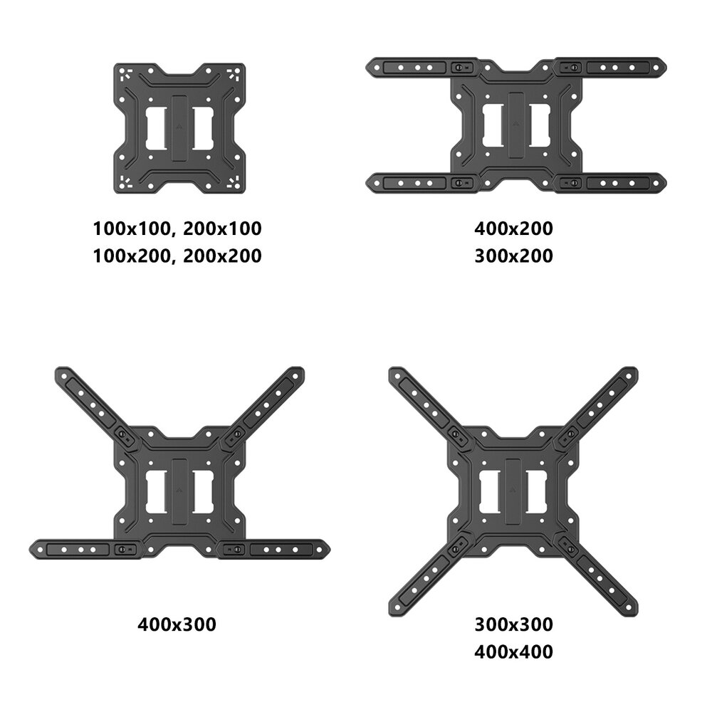 Dankzij de slimme constructie met de VESA plaat en de 4 losse armen is deze beugel al geschikt voor vrijwel elk scherm. Ongeacht de positie van de VESA ophanggaten achterop het scherm. Heeft je scherm een VESA maat van 100x100, 100x200, 200x100 of 200x200 mm. Dan laat je de armpjes weg en bevestig je de plaat direct op de TV.