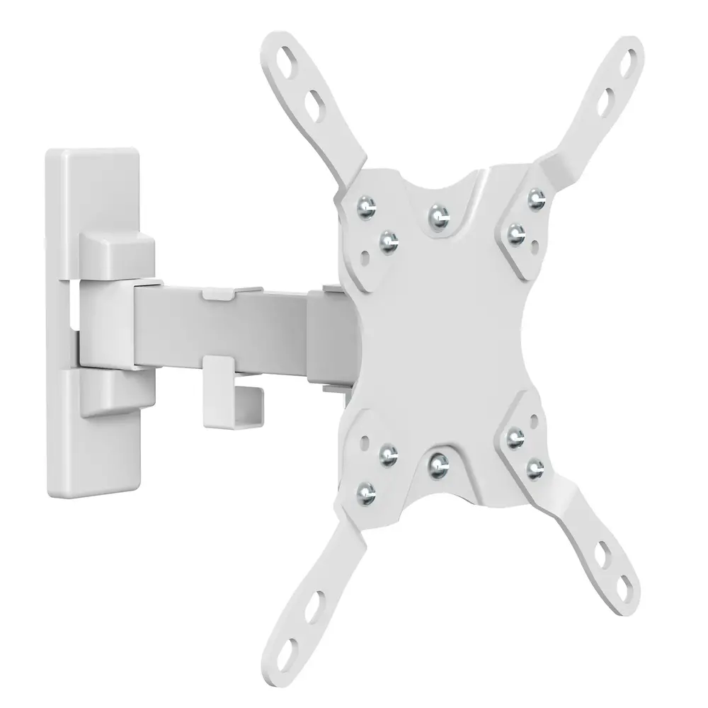 Een eenvoudige maar zeer functionele wandbeugel die geschikt is voor elk scherm met een VESA 100 x 100 tot maximaal VESA 200 x 200 gatenpatroon. Dit zijn veel schermen van 23 t/m 42 inch (let wel even goed op bij schermen van 40 inch en groter). De beugel is voorzien van één enkele arm, je kunt het scherm dus naar links en naar rechts tegen de wand draaien, de draai is 19 cm. Dus wanneer het scherm vollledig naar voren haalt, dan is dit ook 19 cm. Ingeklapt is de afstand van het scherm naar de wand 50mm