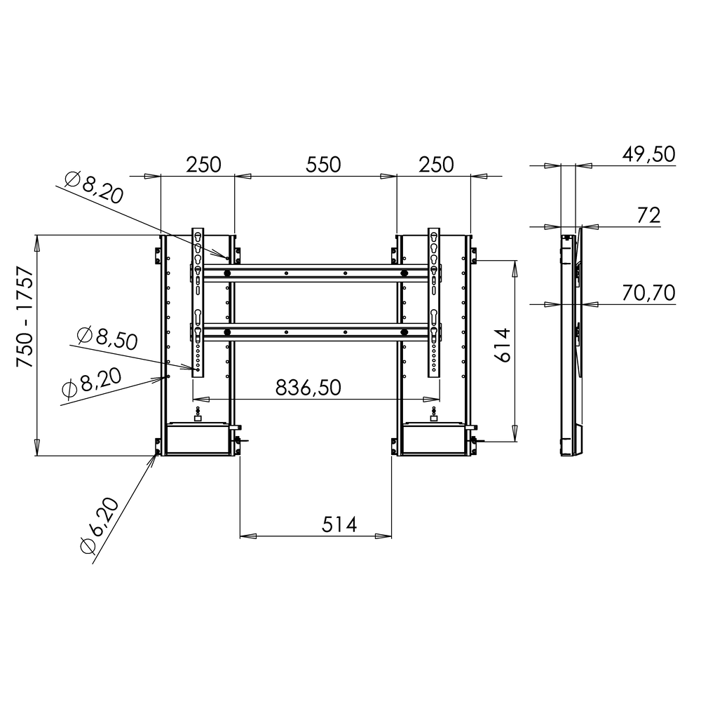 TV Lift TS1000C Twin - Voor montage aan wand, vloer en plafond