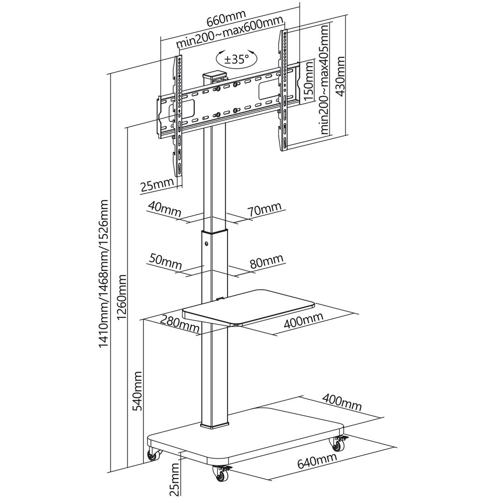 • VESA 200x200,300x200,400x200,300x300,400x300,400x400,600x400 mm