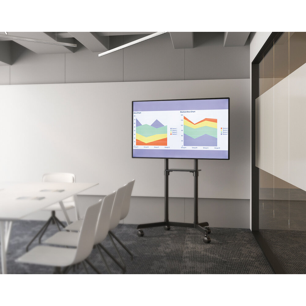 Een TV standaard die is ontwikkeld voor de zakelijke -en educatieve markt en met een draagvermogen van maar liefst 70 kg ook uitermate geschikt is voor de interactieve Touchscreens. De het hart van de VESA gaten komt op een hoogte van 137 cm, wat over het algemeen voor de meeste mensen een fijne hoogte is om te werken, of dit nou voor een niet interactieve presentatie is of een interactieve presentatie.
