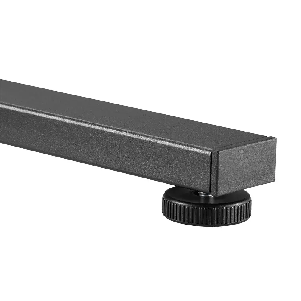 Dankzij de rechte, compacte voet met open ontwerp en een afmeting van 65 x 44.5 cm kun je de TV standaard eenvoudig kwijt in de meeste ruimtes en ook zeker eenvoudig door de deuren heen manoeuvreren. De bekabeling kun je netjes vanaf de achterzijde van de TV langs de buizen naar de vloer brengen om zo een net ogende installatie te hebben. De afwerking aan de onderzijde is een walnoot houten look. Als je de TV hebt opgehangen kun je deze overigens ook nog eens 10° voor -of achterover kantelen, om eventuele reflectie tot het minimale te reduceren.