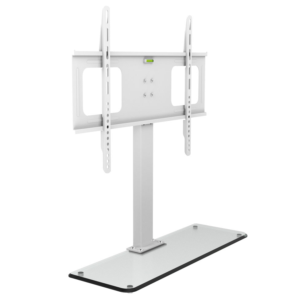 Een eenvoudige maar zeer betaalbare TV standaard voor de grotere schermen. Geschikt voor alle schermen van 32 t/m 65 inch met een VESA gatenpatroon van minimaal75x75mm tot maximaal 600 x 400mm tot max. 50 kg. Voorzien van een voet van 8mm dik veiligheidsglas van 635 x 205mm. De totale hoogte van de TV voet is 697mm (incl. armen). Je koopt bij ons met kopers garantie en deze beugel wordt gratis bezorgd.