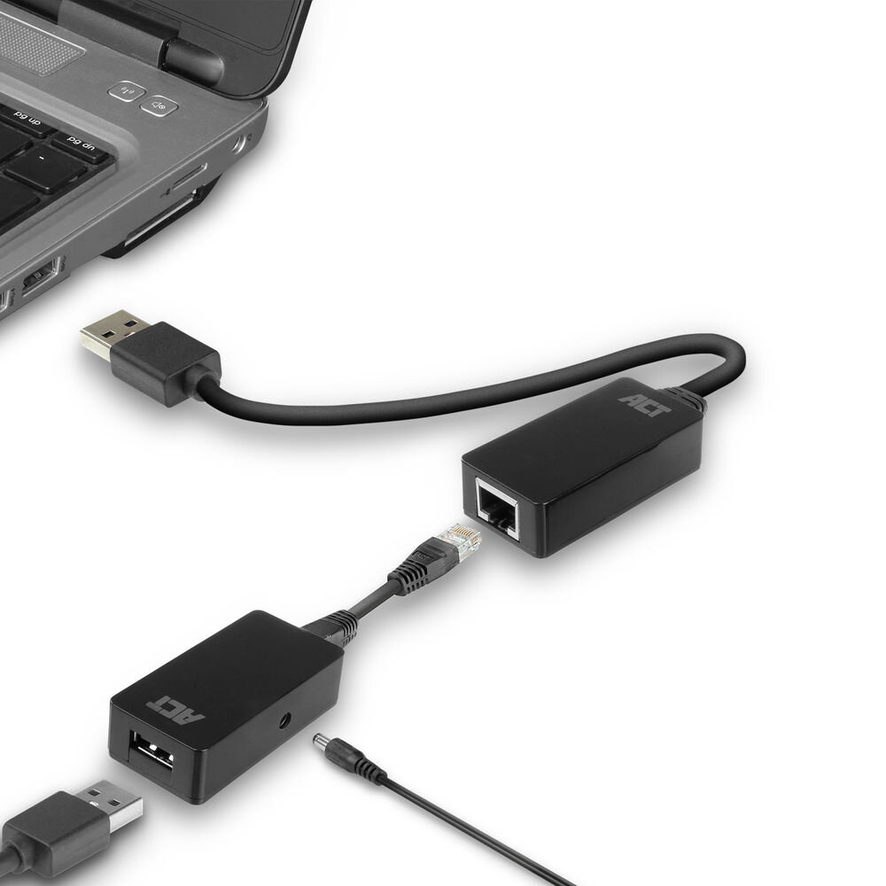 De USB Extenderset wordt geleverd met een externe voedingsadapter. De reciever moet voorzien zijn van een voeding, de Transmitter wordt gevoed via de USB poort van de laptop of PC. De reciever geeft echter alleen USB uit en die moet ook voorzien zijn van een stroompuls. Dit gebeurd met behulp van de meegeleverde actie.