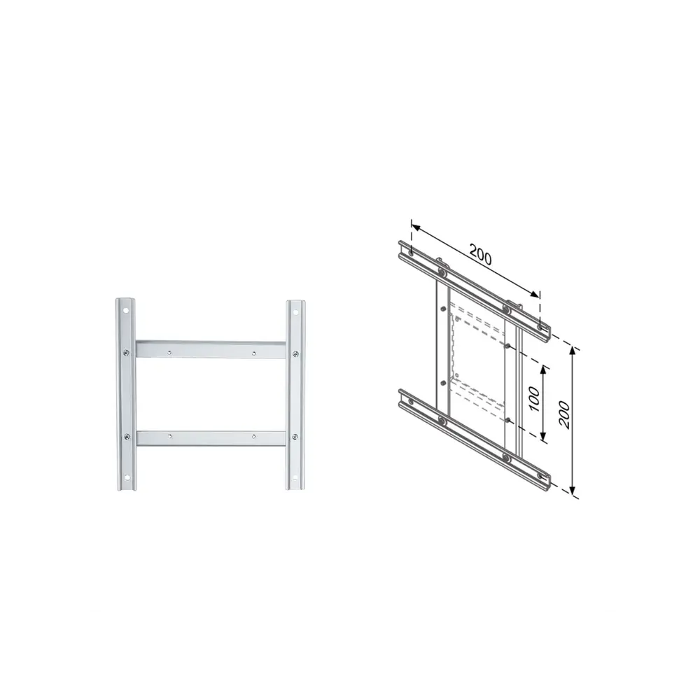 Vergroot je beugel met VESA 100x100 mm aansluiting naar een VESA 100x200, 200x100 of 200x200 aansluiting. Een eenvoudige, maar (kosten) effectieve oplossing om je VESA gatenpatroon te vergroten zodat je niet een compleet nieuwe beugel hoeft te kopen.