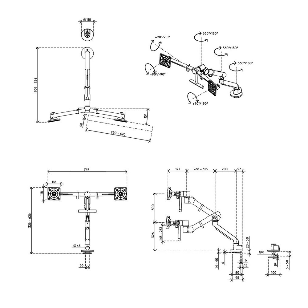 Naast dat je het scherm dus met het trekveer systeem in hoogte kunt verstellen, over een hoogte van 300 mm (van 332 t/m 632 hart VESA). Kun je het na het bevestigen van de monitoren deze uiteraard ook 90° links -of 90° rechtsom draaien, het scherm eenvoudig van landscape naar portrait positie draaien en eventueel nog +90°/-15° kantelen. Kortom, je kunt alle kanten op. Daarnaast is deze monitorarm voorzien van een Zwenkblokkade, dit is handig voor als de monitorarm gebruikt wordt bij een werkplek die tegen de wand staat of waar 2 werkplekken tegen elkaar aan staan en er dus 2 monitoren met de ruggen tegen elkaar aan staan.