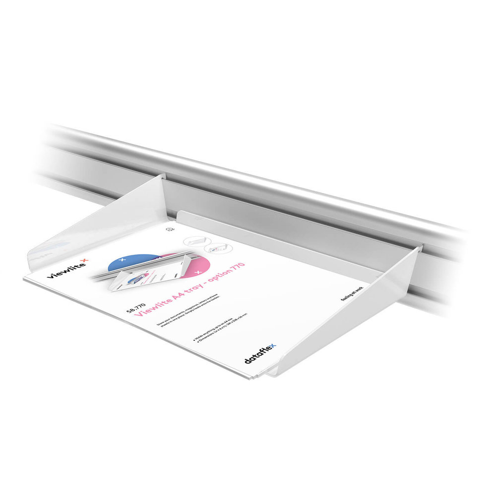 Een ideaal onderdeel van de ViewLite Toolbar oplossingen om je bureau netjes te houden. Alle losse A4-tjes en papiertjes kun je netjes in dit bakje liggen, zodat je bureau geen puinhoop wordt. Met behulp van de diverse onderdelen van de ViewLite toolbar, kun je een optimale werkplek samenstellen die zorgt voor meer rust en privacy op je werkplek, maar ook een opgeruimdere werkplek.