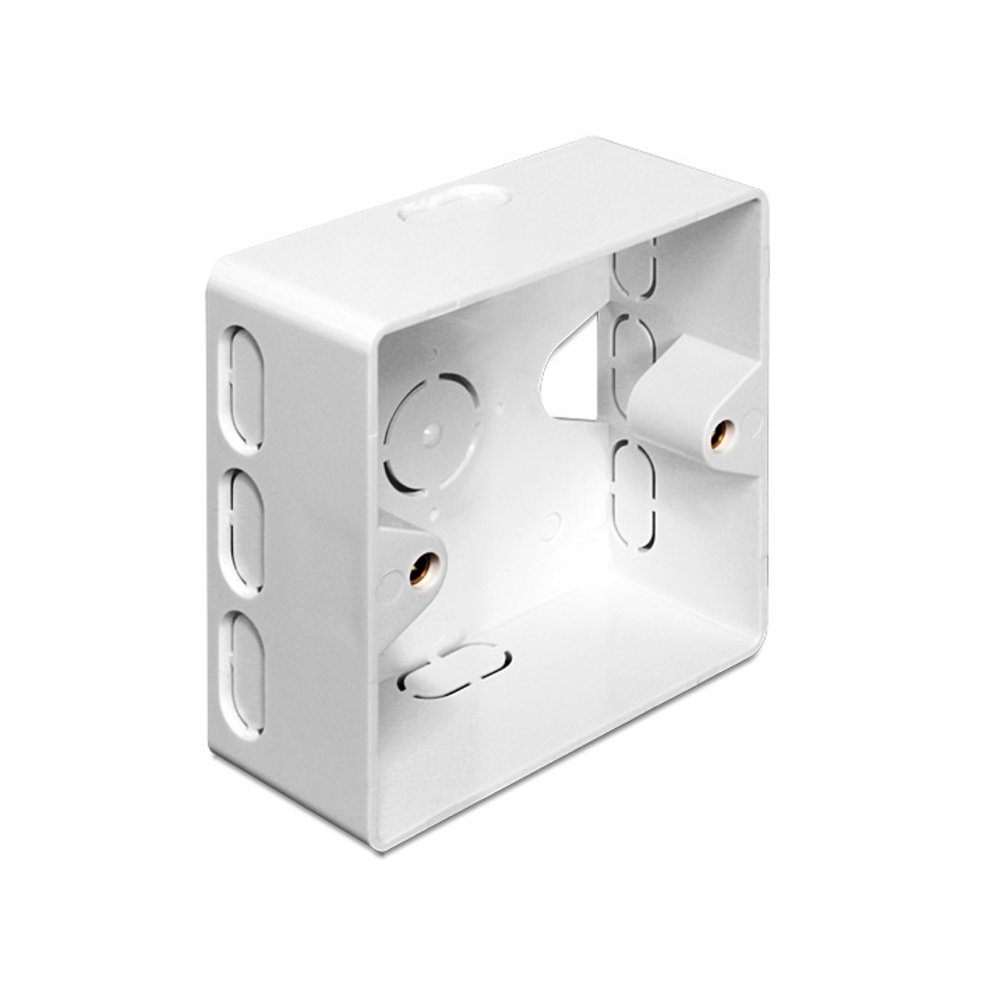 Deze opbouw wanddoos is speciaal aan het assortiment toegevoegd voor de DeLock Keystone wand frame (wall outlet) met artikelnummer 86202. Geschikt voor opbouw systemen met een outlet van 60mm diep en heeft break-out punten aan elke zijde. Zo kun je de bekabeling eenvoudig de juiste kan op leiden.