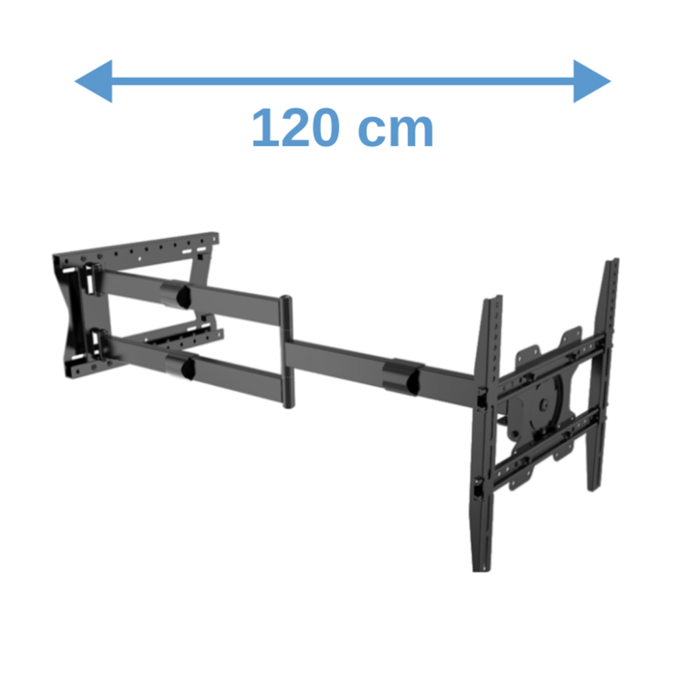 Ben je op zoek naar TV beugel met een hele lange arm, omdat je de TV om de hoek wilt kunnen draaien, of je grote TV volledig haaks op de wand wilt kunnen zetten? Wellicht om een muurtje heen wilt kunnen draaien? Dit is voor zover bekend de langste TV beugel die er verkrijgbaar is op de markt. Dus dan zal dit de beugel zijn die jij zoekt!